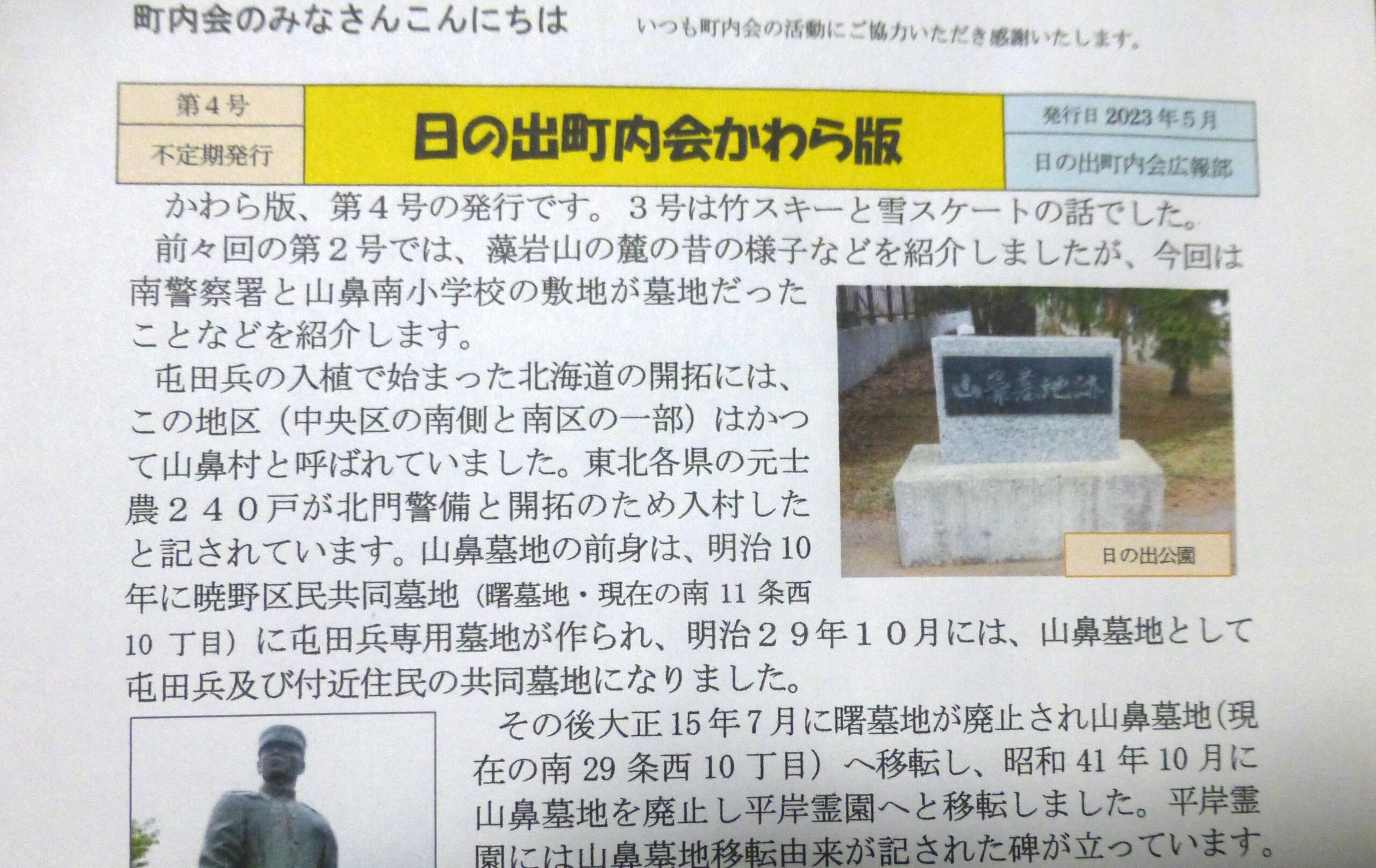 日の出町内会広報部では、この地域が昭和の時代どんな地域だったのかを過去に遡って「かわら版」として記しています。(不定期で発行) 他の町内会の方も「昔のこんな写真があるよ」という方がいらっしゃいましたら是非お声がけ願います。