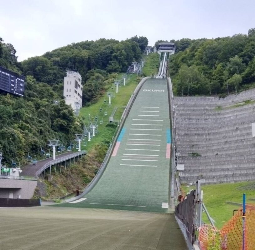 大倉山ジャンプ競技場ではジャンプ台にのぼりました。