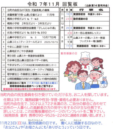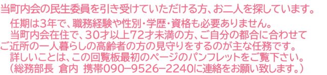 山鼻第14西町内会では、民生委員になっていただける方を探しています。
