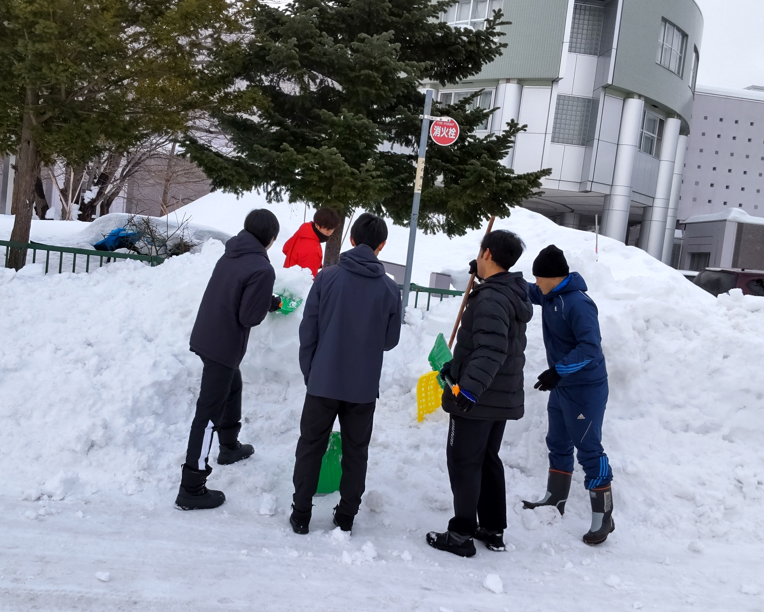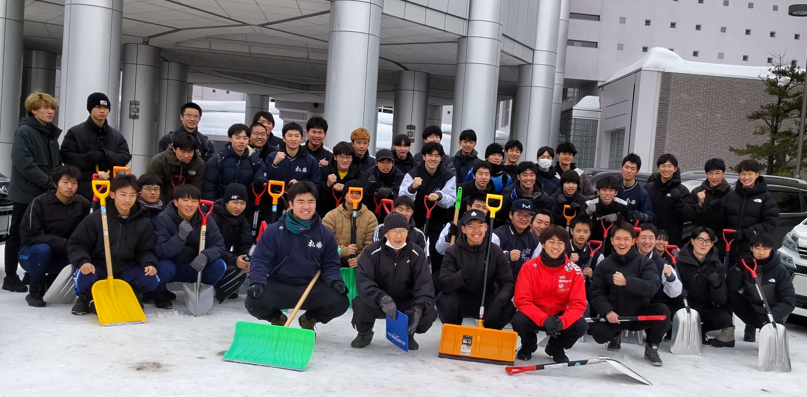 2月15日㈰ 10時~11時まで 札幌南校「野球部」「サッカー部」「ラグビー部」の学生約60名が町内の除雪ボランティアを行ってくださいました。